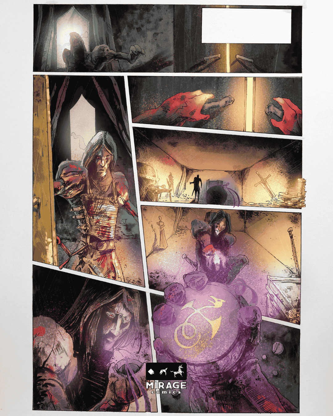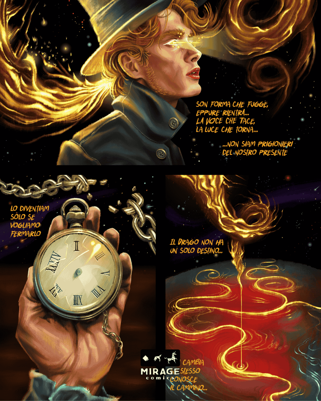 Un viaggio tra mondi e memorie alla ricerca di una verità sepolta. La Maledizione del Drago d’Oro è una narrazione poetica e immaginifica che segue le orme di un uomo costretto a rinascere, combattere e ricordare. Tavola dopo tavola, prende forma una storia di metamorfosi, inganni, legami spezzati e ricomposti. Un racconto epico dove l’azione si fonde con immagini potenti ed evocative.